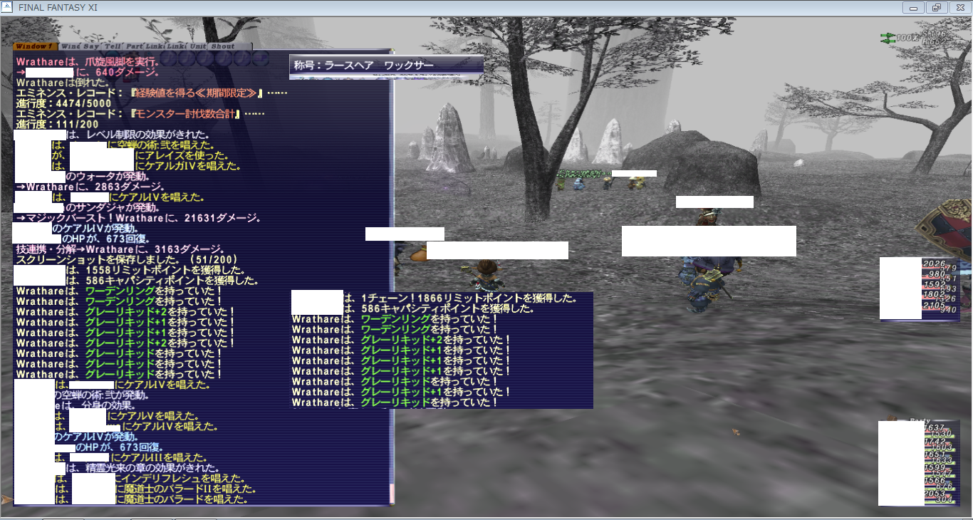ということで、グレーグラス/グレーフィッシュ/グレーウッドの3種をトレードすることでもらえる大事なもの「ラーズヘアの人参」でわくWrathare(ウサギ族)を狩ってきました(´・ω・`)